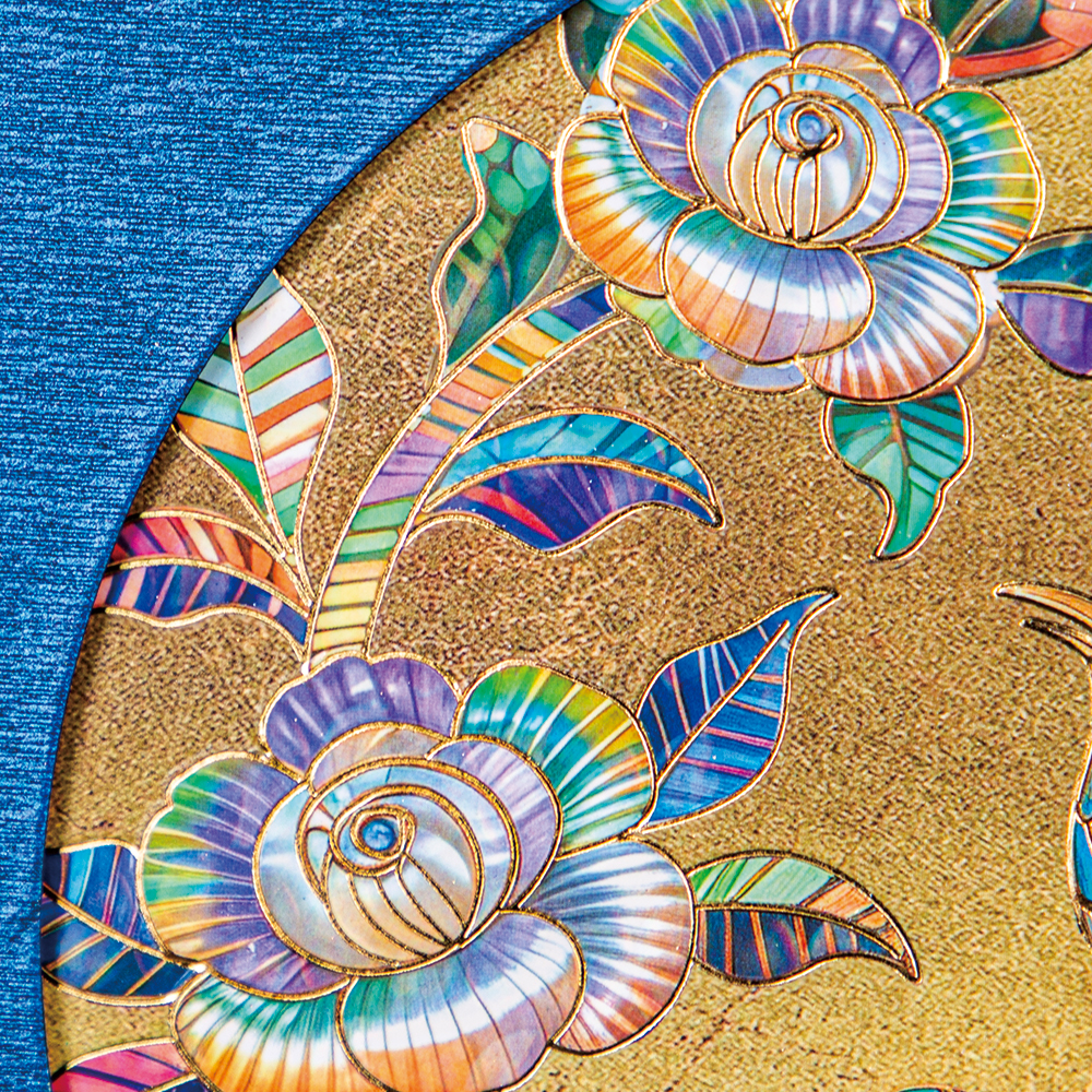 The craftsmanship showcases meticulous attention to detail. The floral and bird patterns on the box lid combine **gold foil stamping with color printing**. The feathers of the birds and the petals of the flowers are vibrant and layered, shimmering brilliantly against the golden background, as if condensing an imperial-style floral and bird painting onto the box. Traditional swastika motifs along the edges are embossed with fluid lines and intricate details, each carved to evoke a rich national trend aesthetic. The lid and base fit together seamlessly, opening and closing smoothly and naturally—each use immerses you in the craftsmanship of national trends.