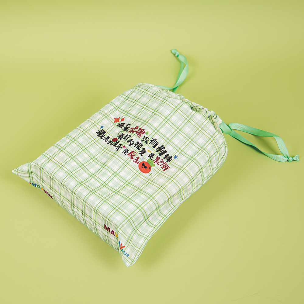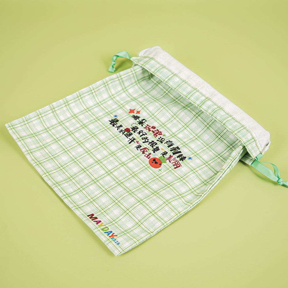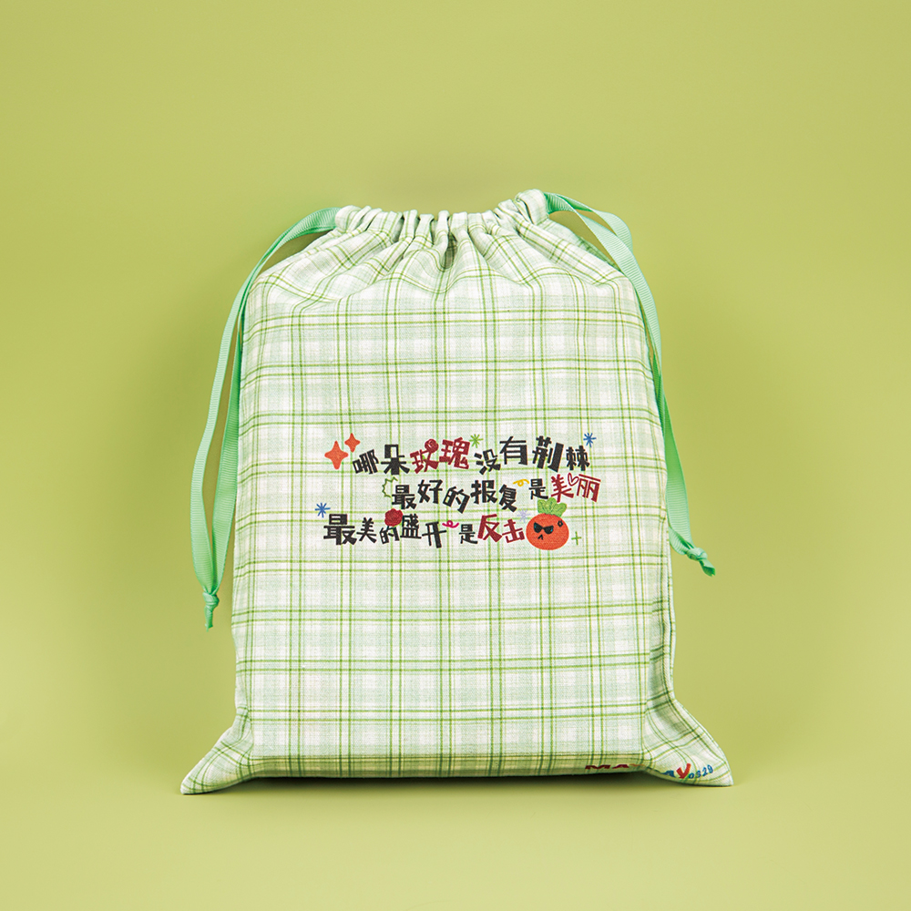 This cotton bag features a classic drawstring closure. The bag has a square, full shape, and the drawstring slides smoothly without snagging. It closes easily with a single pull, securely holding your belongings while allowing you to adjust the tightness as needed, making it incredibly convenient for storage and carrying. The fresh green-and-white checkered pattern in the image, paired with a drawstring in the same color scheme, creates a soft, cute, and soothing overall look. Its size is perfect for everyday storage needs—whether for clothes, miscellaneous items, or as a gift bag. The soft texture exudes a soothing vibe, and holding it in your hands fills you with the warmth of everyday life.