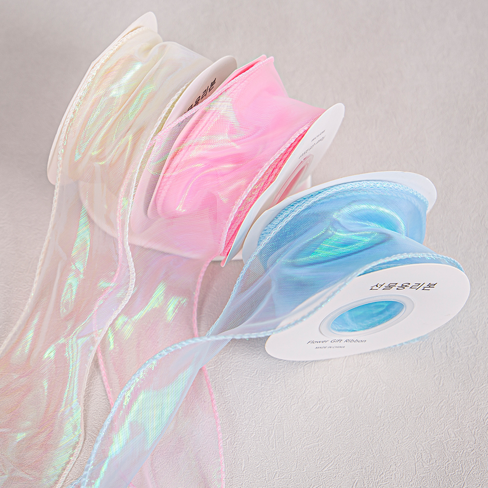 Crafted from iridescent yarn, the ribbon not only boasts a dreamy appearance but also offers a comfortable touch. The material is soft and skin-friendly, ensuring it causes no damage to surfaces. Additionally, it has excellent drape, falling naturally with graceful lines that significantly enhance the overall decorative effect.