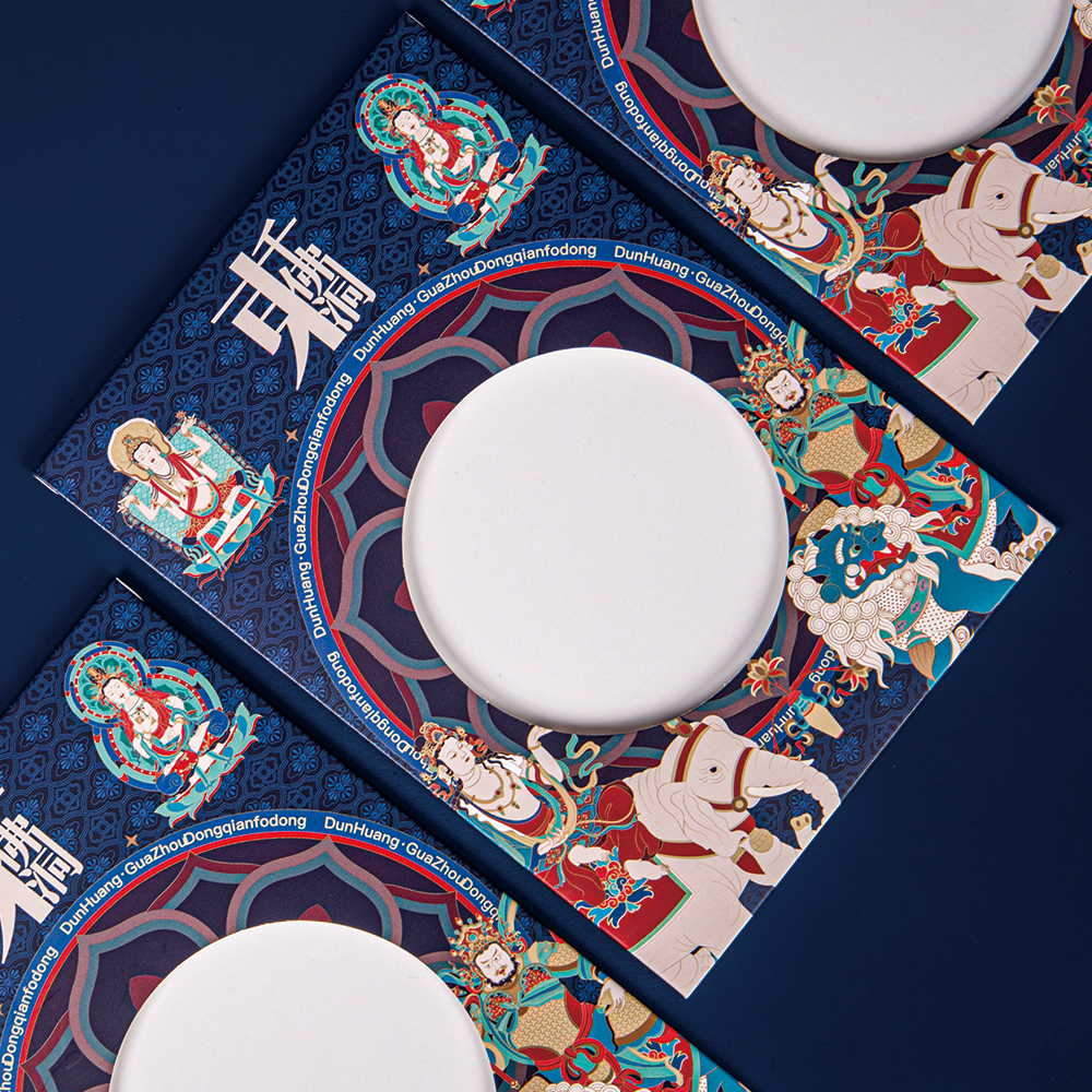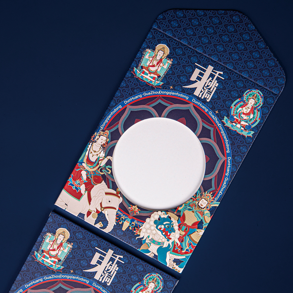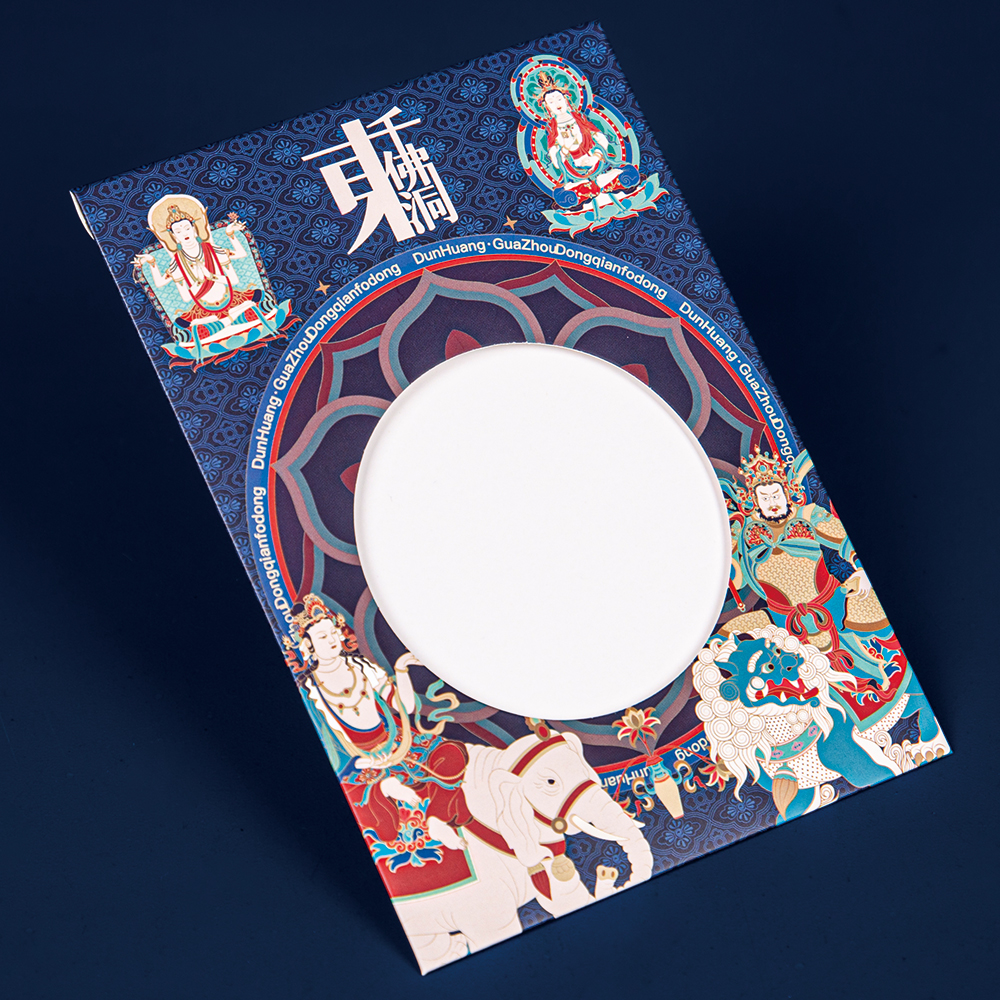 This envelope breaks away from the conventional form, featuring an innovative design combining **a cutout window with a national trend-inspired frame**. While preserving the classic envelope opening mechanism, the front features a circular cutout, framing the “heartfelt message within” like a Dunhuang art gallery. This design aligns with traditional envelope usage while infusing the “sending-receiving” process with artistic ritualism rooted in Dunhuang culture, adding a distinctive national trend charm to correspondence.