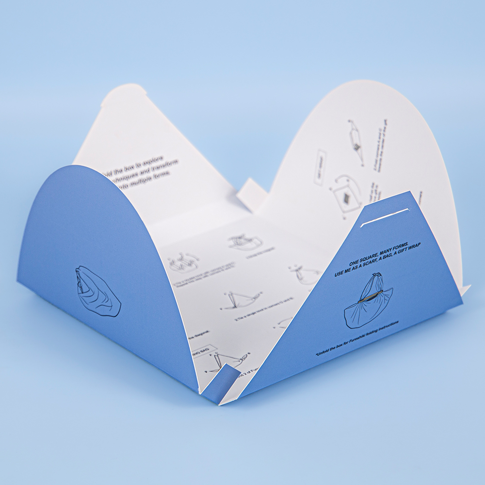 Featuring a minimalist square silhouette, the box unfolds into a flat storage space. When closed, its edges align perfectly, as if mounting a savannah illustration onto the lid. Its folding structure allows complete flattening for space-saving storage when unused, yet maintains stable form upon opening. Unfolding it carries the ritualistic feel of ‘unfolding a painting’.