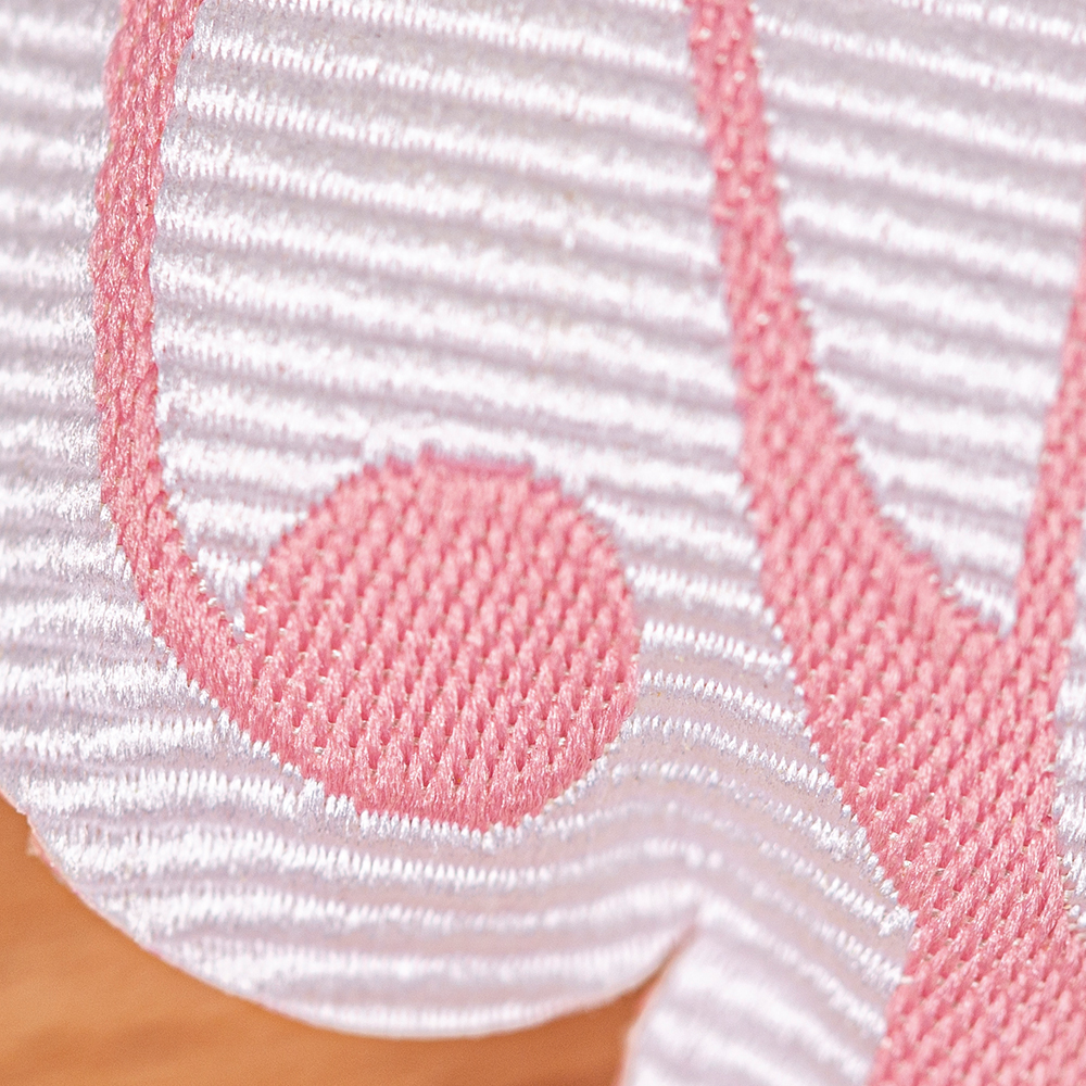 **Precision embroidery techniques** create the exclusive patterns depicted, featuring soft color combinations (pink and white interwoven). The designs appear three-dimensional with rich details, showcasing meticulous craftsmanship in every stitch.