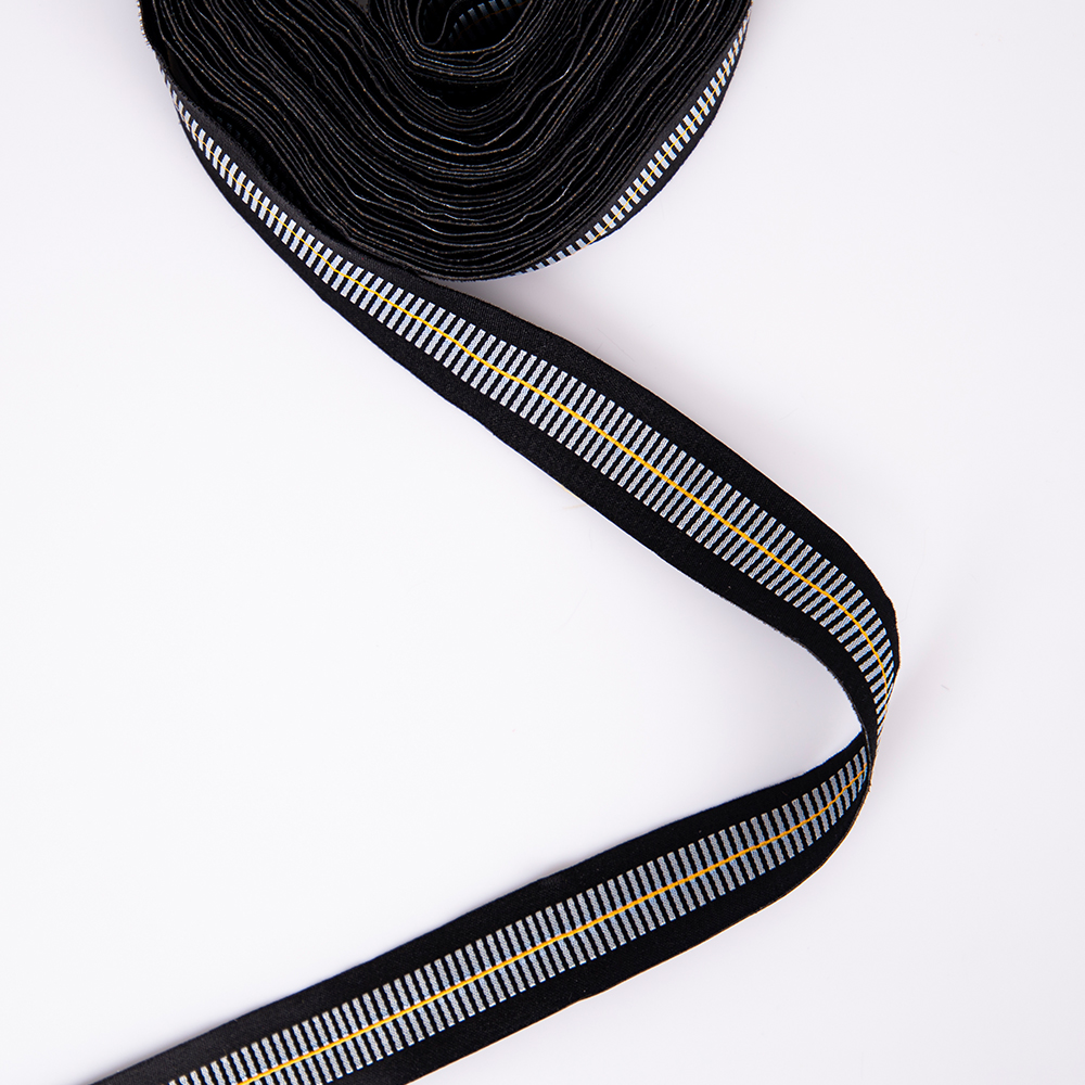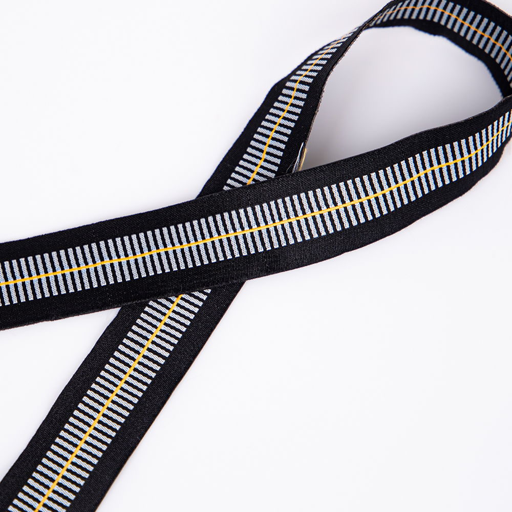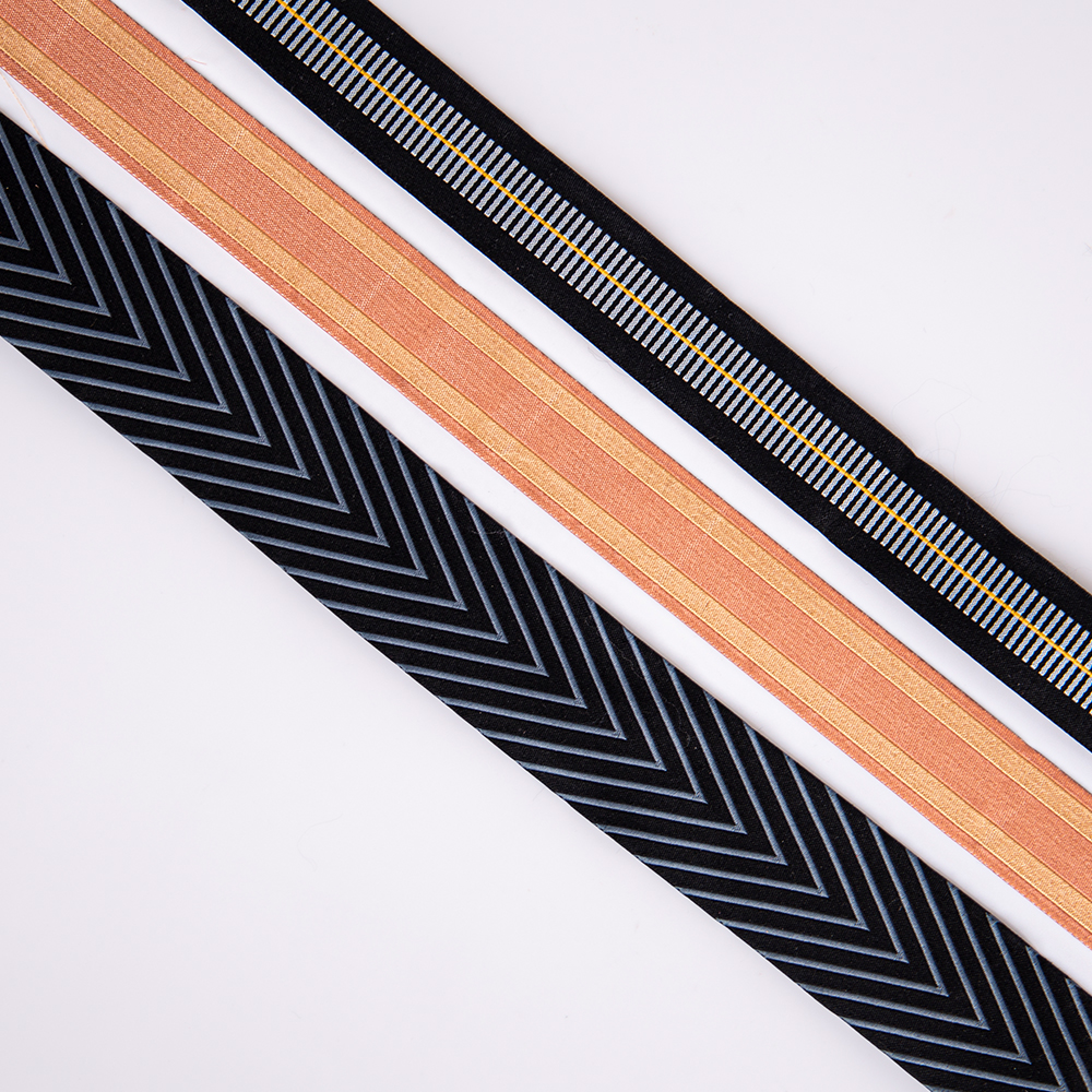 The texture of jacquard webbing itself serves as a “design language”—geometric arrow patterns convey a fashionable, dynamic style suited for streetwear and athletic luggage; color-blocked stripes exude a retro, light luxury aesthetic ideal for premium leather goods and home furnishings; while fine decorative stripes lean toward refined simplicity, perfect for accessories and children's apparel.