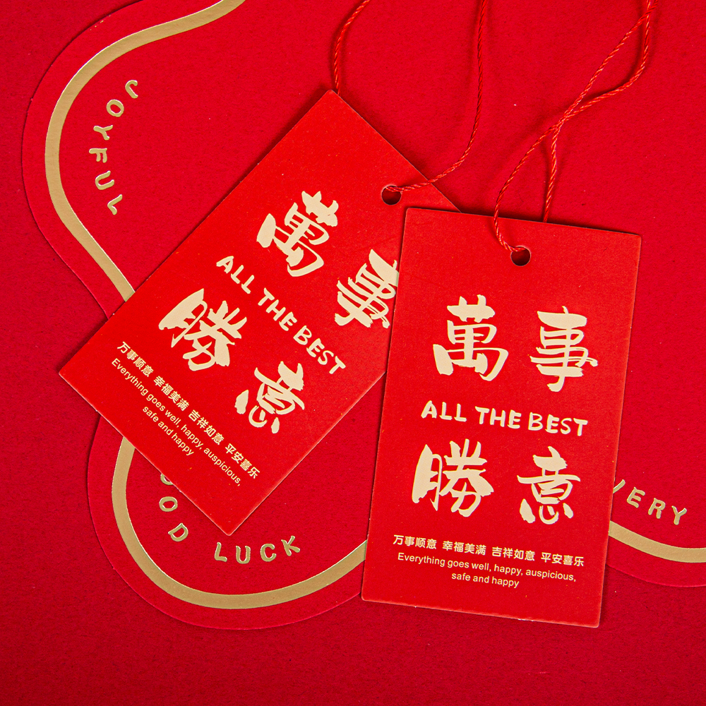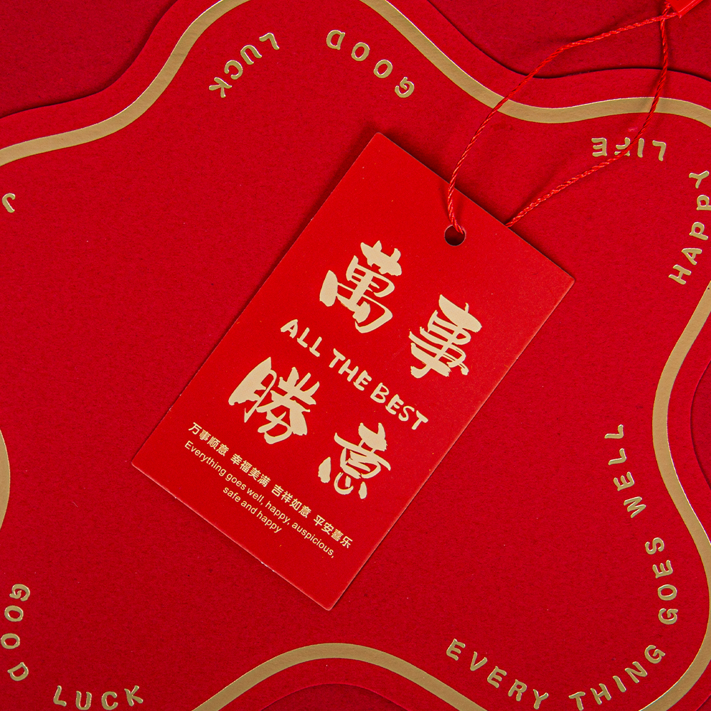 Should you wish to personalise this token of good fortune, we offer bespoke options: adjust tag dimensions for varied applications, select richer materials like gold-flecked crimson or subtly patterned red, or replace the text with bespoke blessings and add your brand logo. Whether as a client gift identifier or a private message for friends, this tag transforms into a New Year's label imbued with your heartfelt intentions.