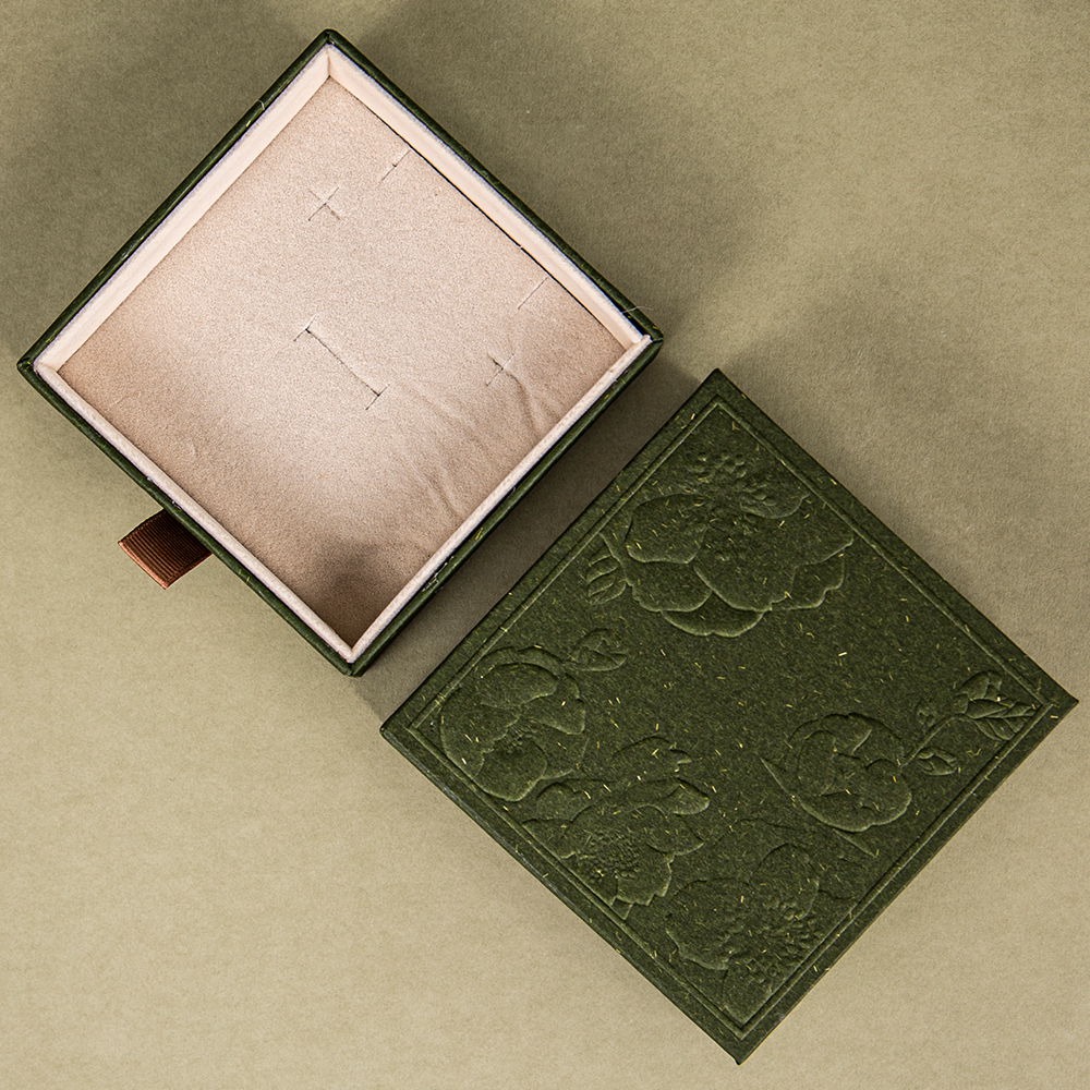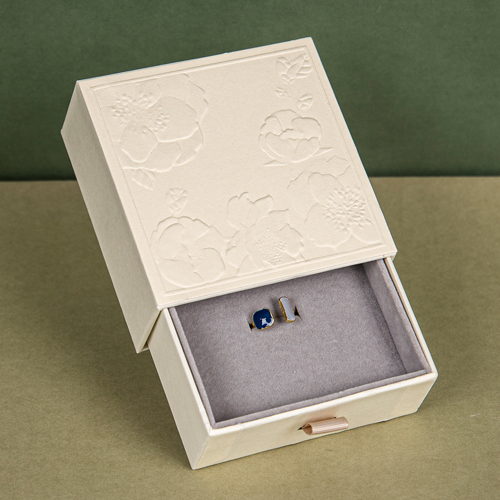 Should you wish to tailor this drawer box to your specific needs, we can customise it for you: adjust the inner tray shape to accommodate different items, switch to vintage hues like burgundy or coffee brown, or replace the embossed pattern with your brand logo or exclusive motif. Whether for jewellery packaging or handmade storage, this box can become a vintage vessel embodying your aesthetic sensibilities.